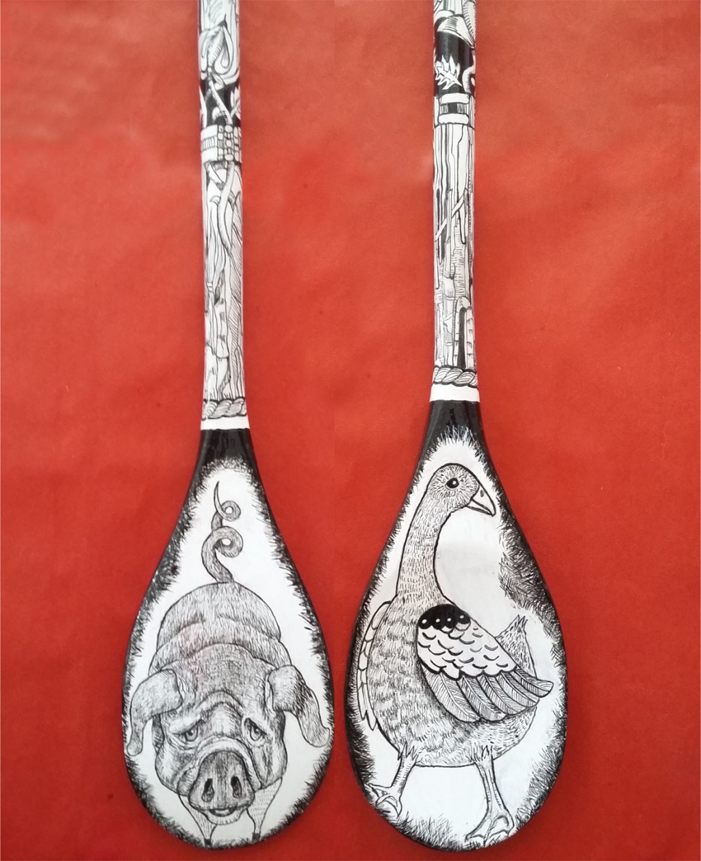 Drawing on a wooden spoon.