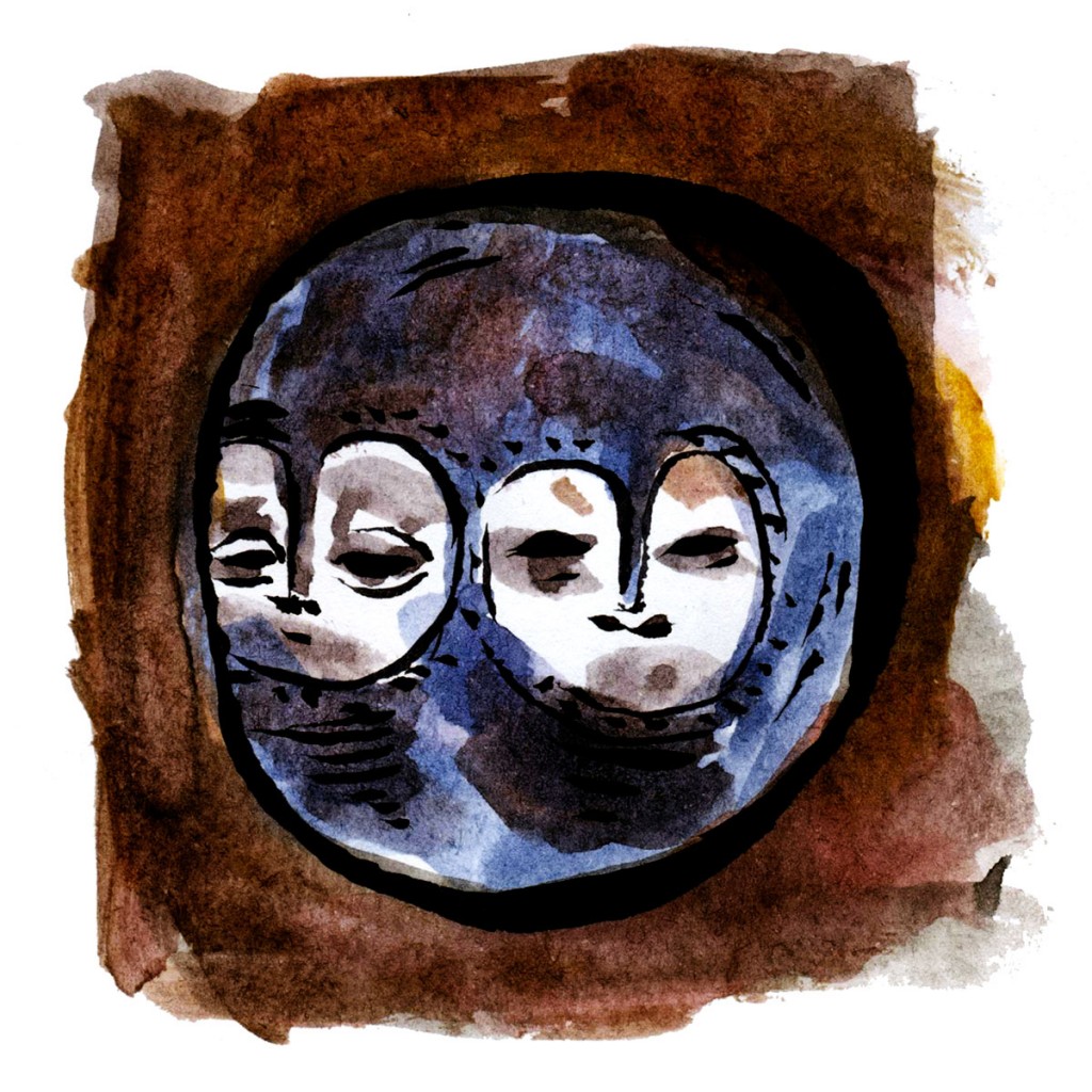 Here's an ink illustration from my sketchbook. The only thing more terrifying than dying of the plague might be encountering a plague doctor. The type at the bottom says "A Black Sun Revolves Around You." It's been distorted and abstracted, but it's derived from letterforms.
