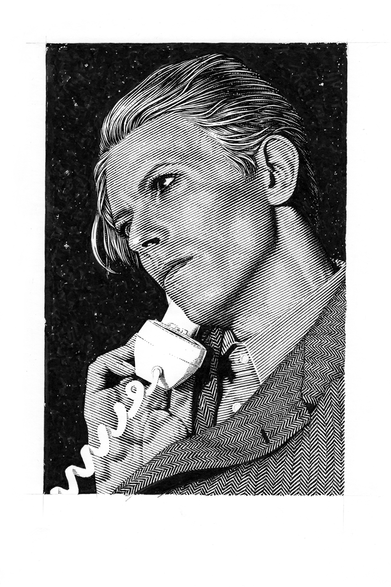 Ink on scratchboard.