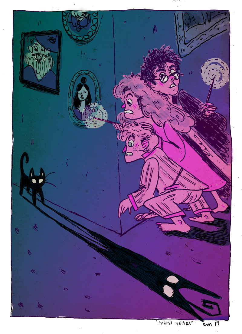 I've been re-reading the Harry Potter Series, and now am on a quest to do a small illustration for each of the books. This one is from "The Sorcerer's Stone" and features Mrs. Norris, my favorite evil cat.