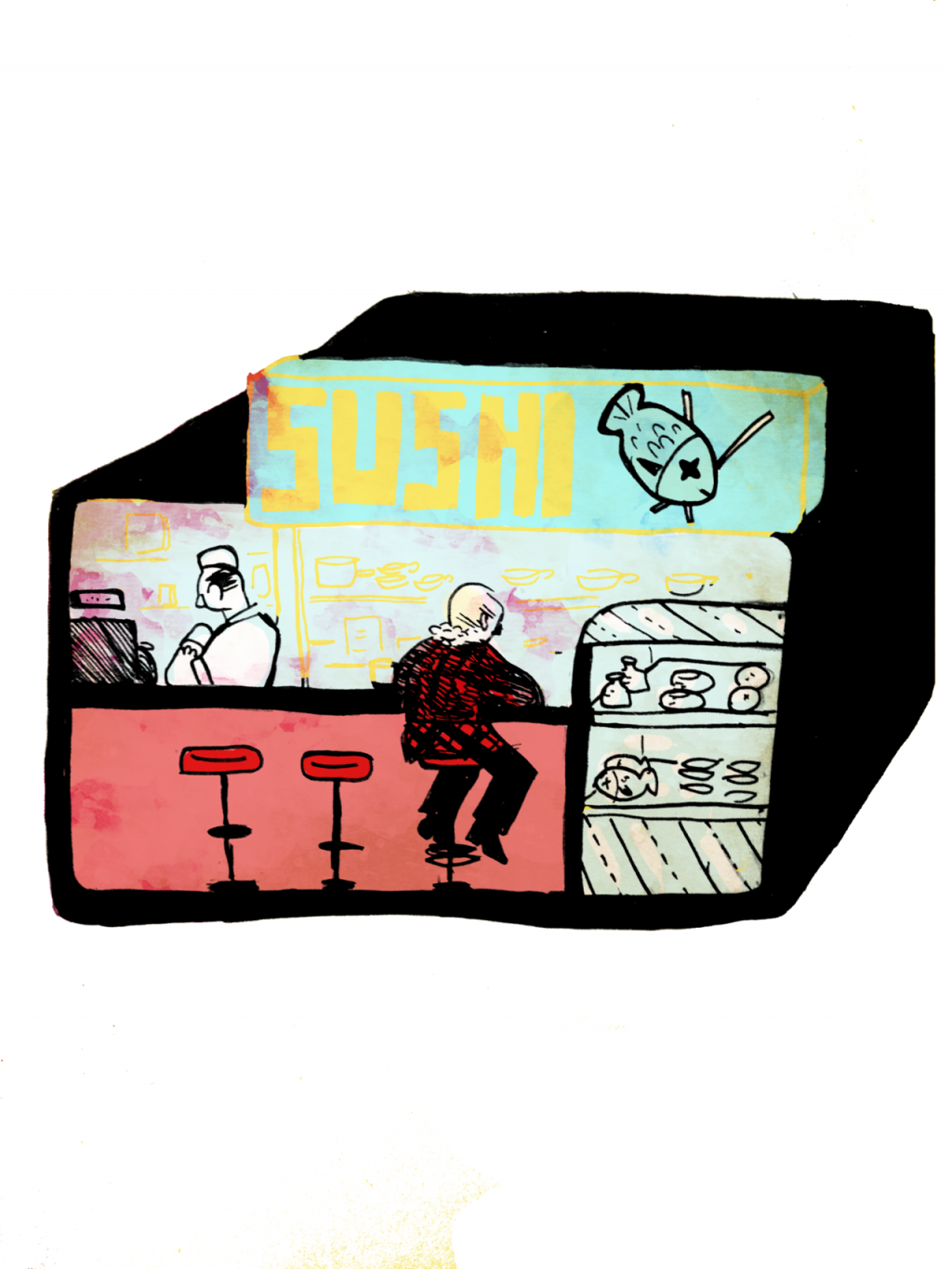 art, bar, digital art, doodle, illustration, sketch, sushi