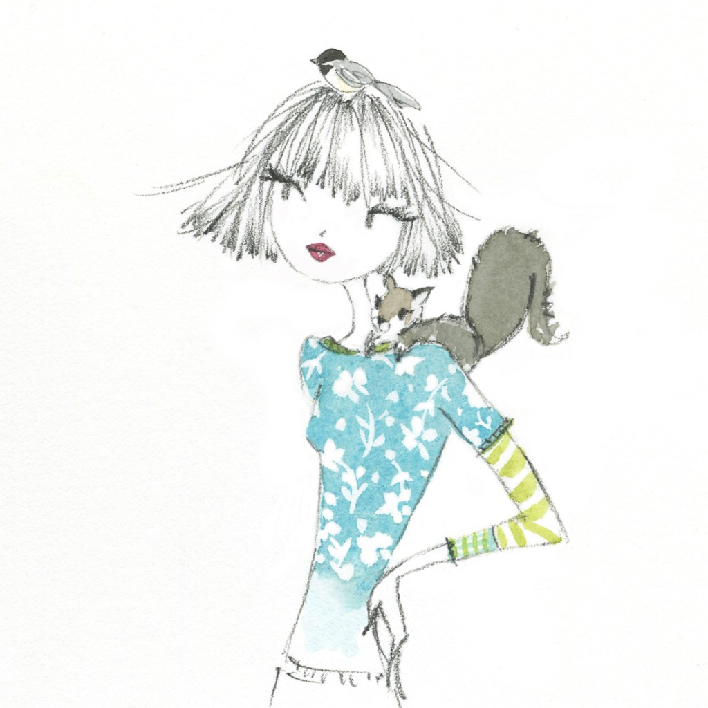 birds, girlart, illustration, pencil, squirrel, watercolor