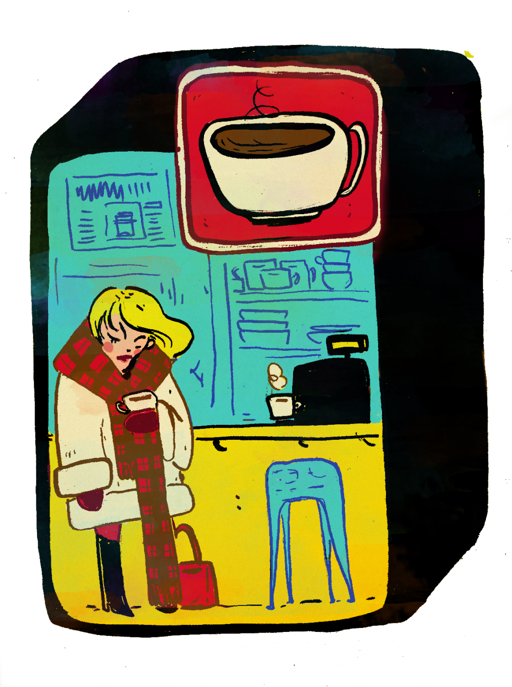 art, coffee shop, doodle, illustration, pen and ink, sketch