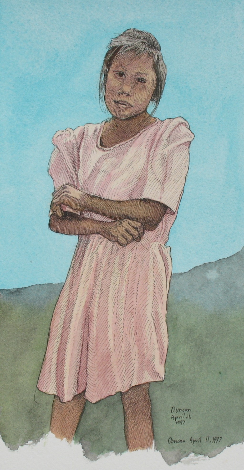 Vero, a young girl in Texcoco, near Mexico City, drawn from one of my photographs.