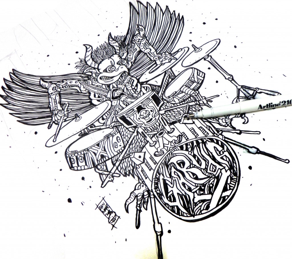 Celebrate hari raya in Malaysia. Village style. Pen and ink on paper . Scan and edit in photoshop.