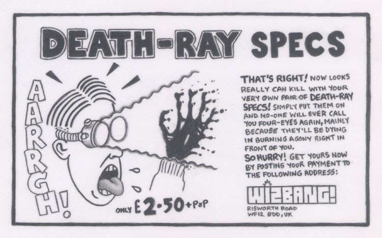 (2B pencil on a 87mm x 139mm postcard) X-ray specs were an iconic mail order item in comics. It was one of the first things that kids bought that introduced them to the world of dubious adverts. I kept the image here simple, like the original advert.