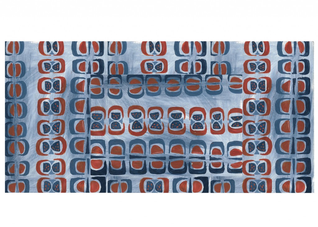 Hand painted grey/blue and sienna repeat pattern