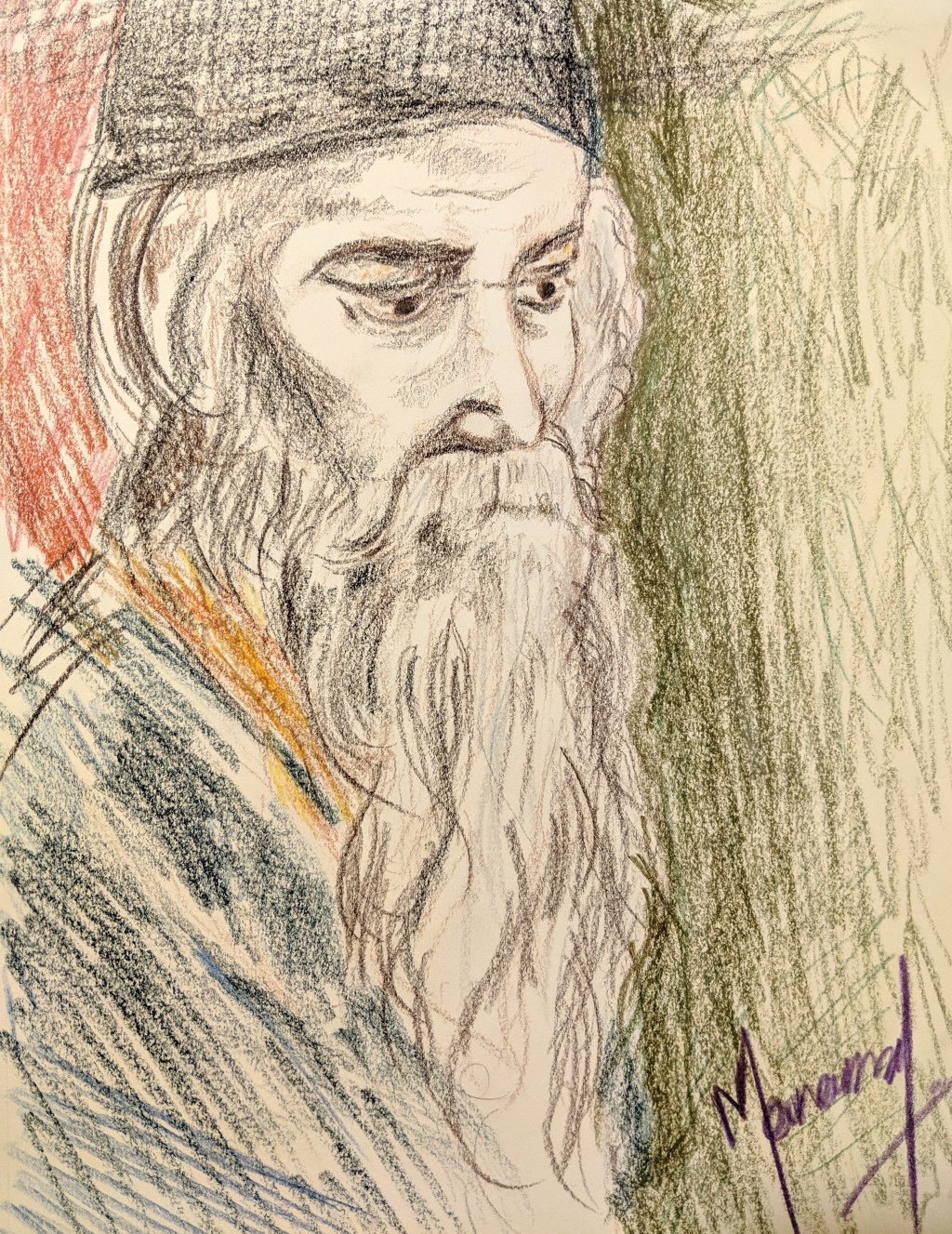 colored pencils, drawing, portrait, tagore