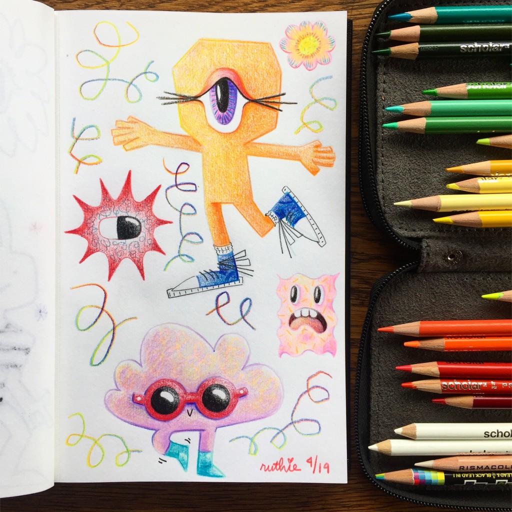 colored pencil, doodling, sketchbook