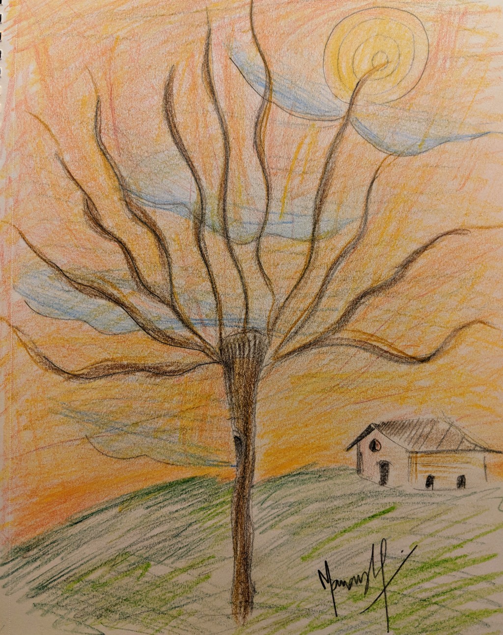 A caged pigeon dreams of freedom. An art work by me created using graphite pencil and prismacolor sticks.