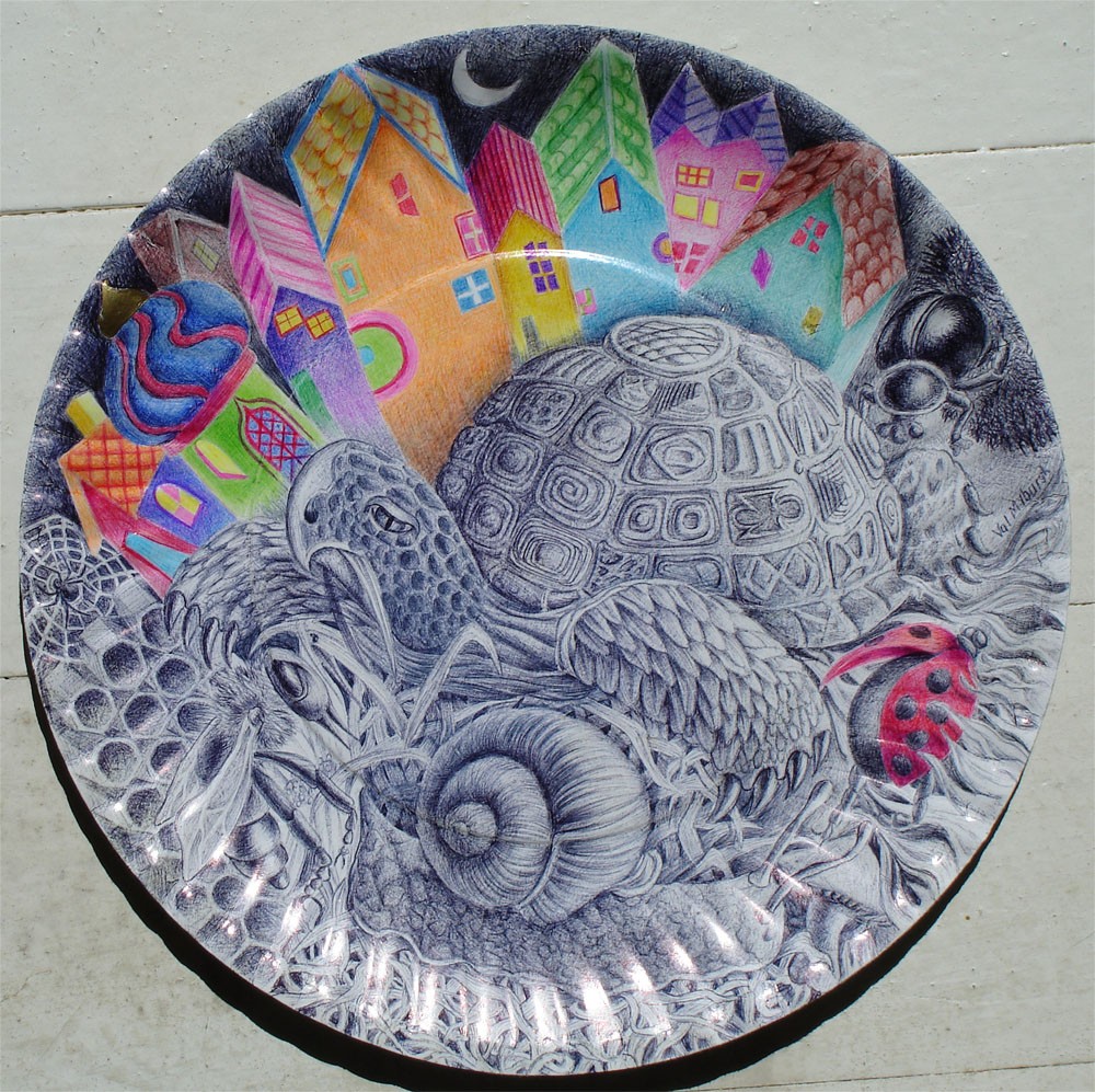 A ballpoint pen portrait using only red and green pens. Reference photo from Paint My Photo