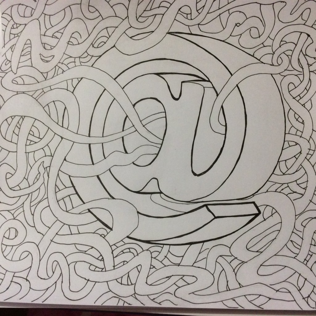 Ink on paper from my 3d model of a pendant realized on Shapeways.