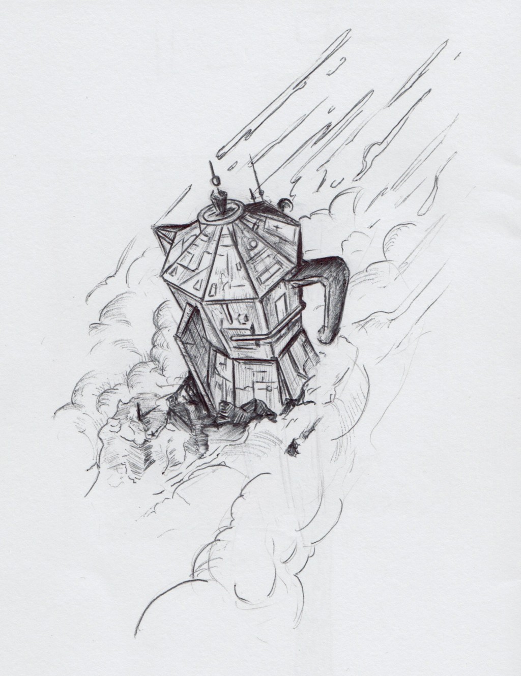 Spacestation Bialetti, drawn with ballpoint