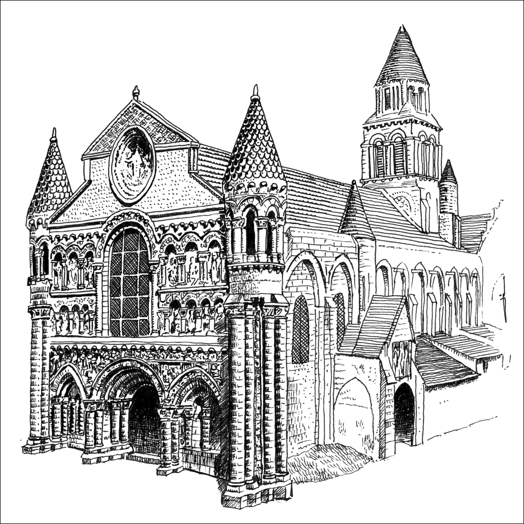 Watercolor of a bunch of grapes after a botanical sketch by the artist Troncy.