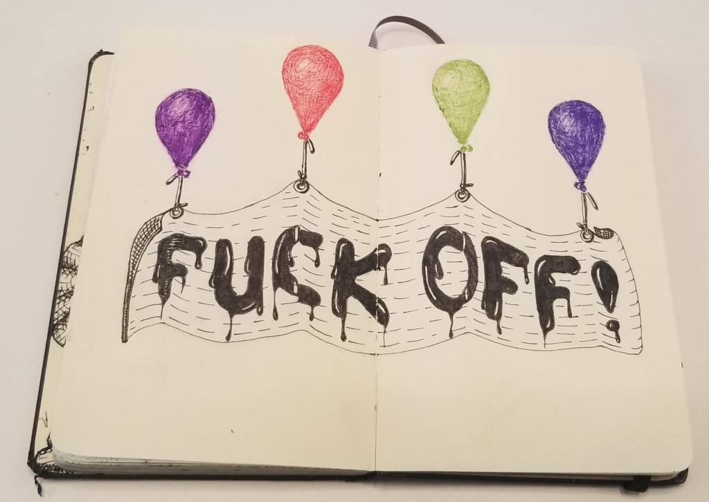 I hope this image does not break any rules on the site and can be removed if it does. This is not an angry doodle, just a mix of happy and angry themes to close out this doodle book. New doodle book is prepped with images coming soon.