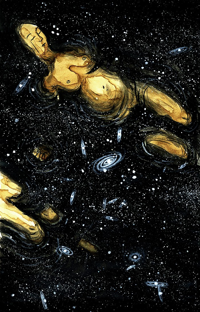 'Inside galaxy' ...and spring in my sketchbook 2019. Coffee, inks. @ ANIA PAWLIK 2019