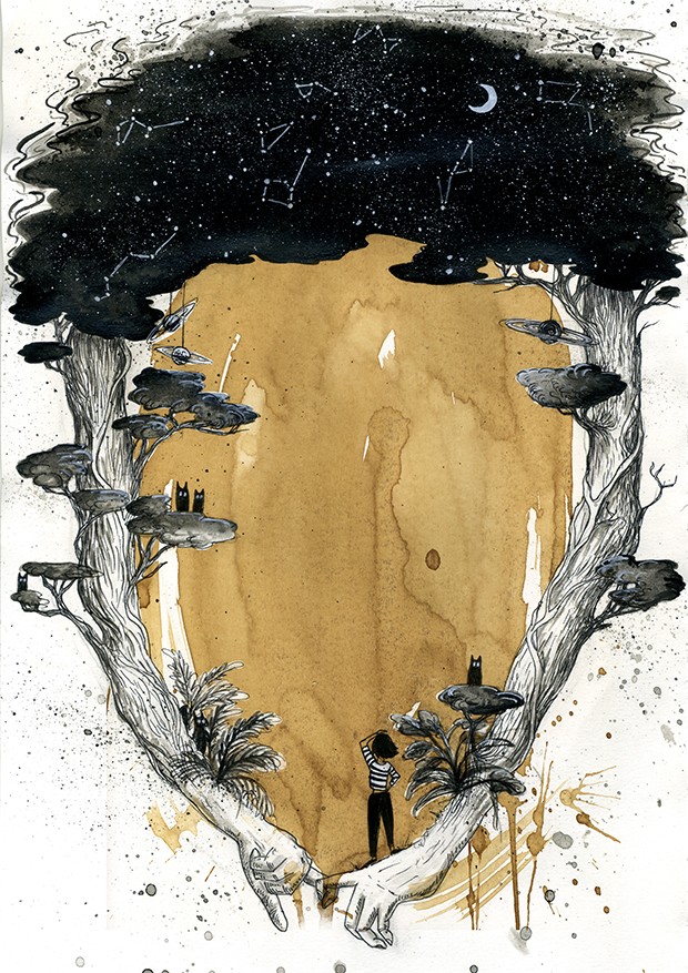'Glass of universe'. Ink, coffe and red wine. Yes, I was seeping on this wine while sketching...