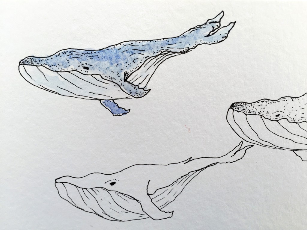 animals, drawing, illustration, pen and ink, watercolor, whales