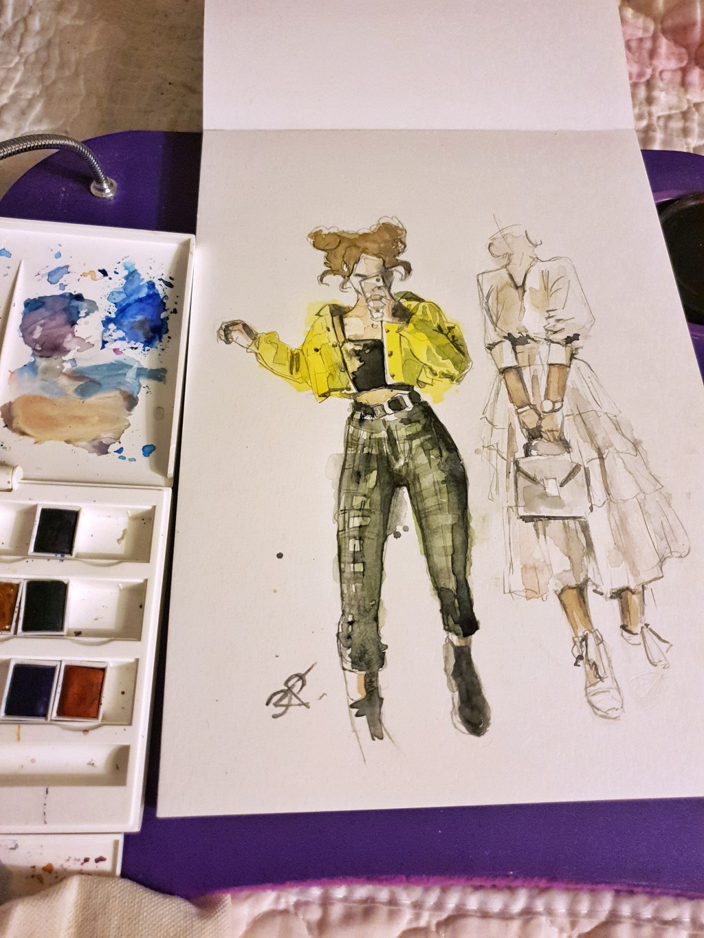 drawing, fashion illustration, illustration, painting, pencil, sketching