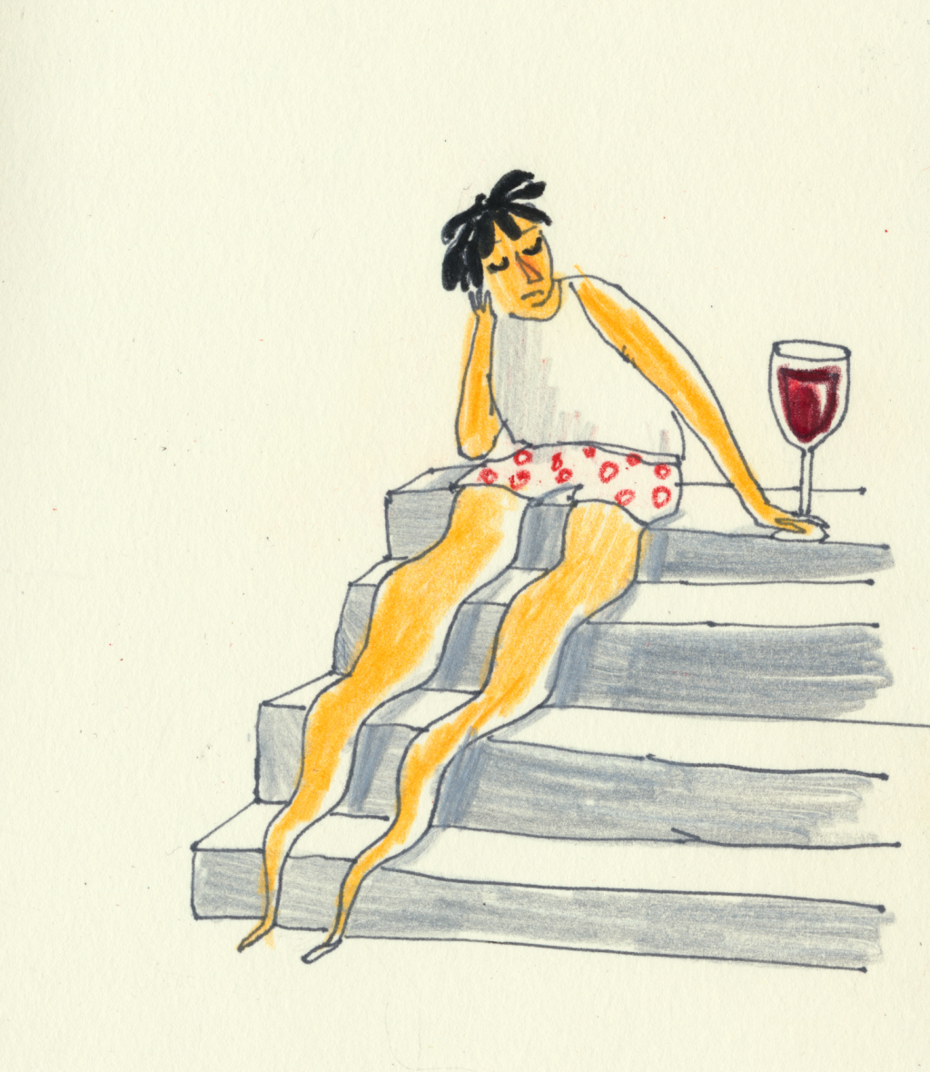 I went back to search for this image on your page. It's a perfect depiction of how wine can make you feel both vulnerable and dizzying. I like this. Makes me feel wobbly, like a good glass of wine. :)