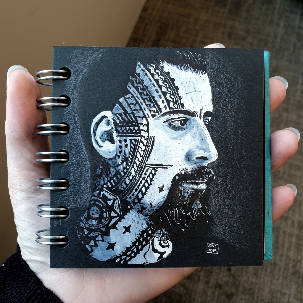 black paper, pen and ink, portraits, tattoo