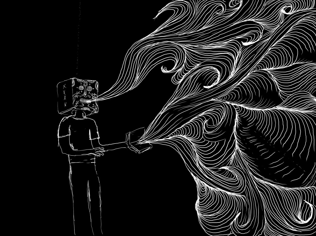 This is a new character I'm working on for an illustration class. Doing it with a black background makes me think about it a little different.