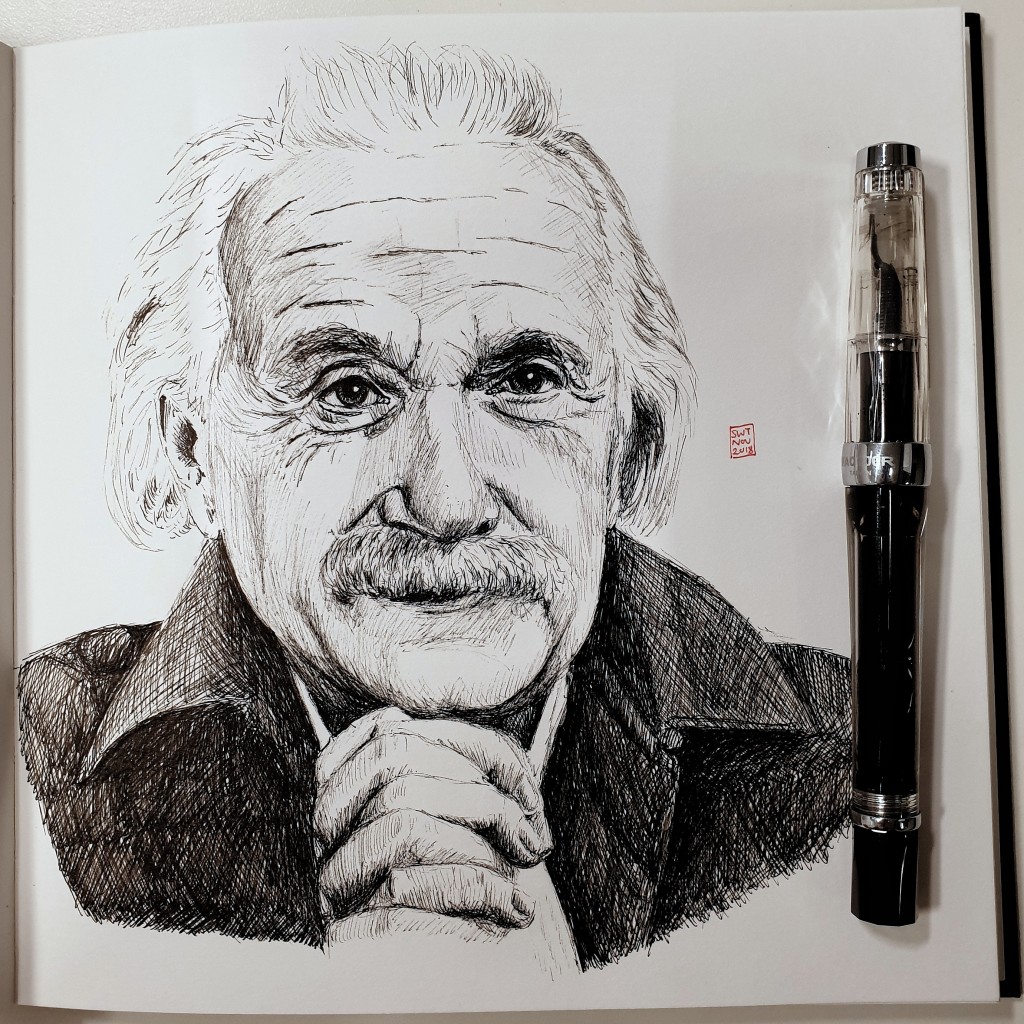 einstein, ink, pen and ink, people, portraits, sketch, sketchbook