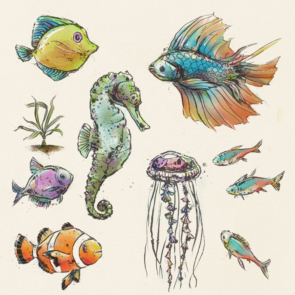 New drawing drawn with my Sailor Fresca Tangerine 1911s F fountain pen. Ink = Noodlers Black American Eel. Color coming next.