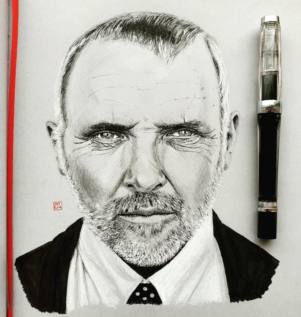 anthony hopkins, drawing, mixed media, pen and ink, sketchbook, traditional art