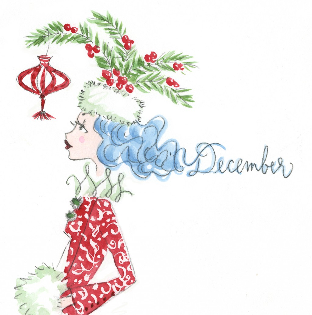 christmas, holiday, illustration, ornament, pencil, watercolor