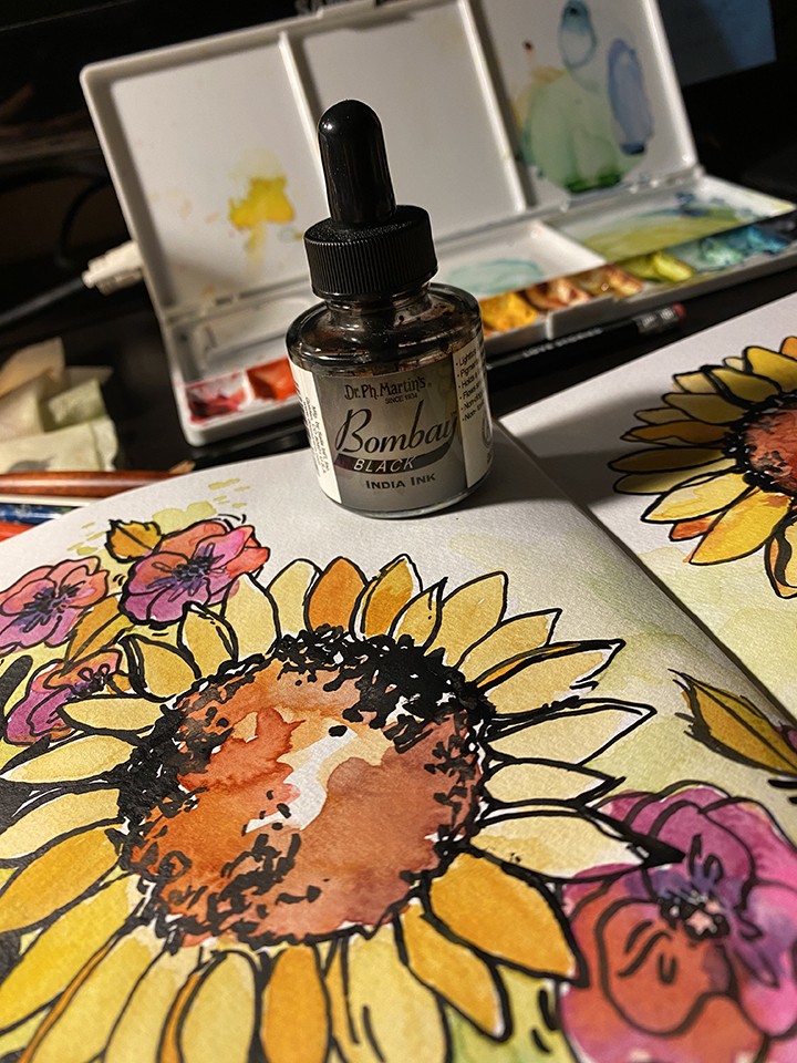 That Prussian blue is a mood all on its own. Watercolor in sketchbook Watercolor and Acrylic on paper