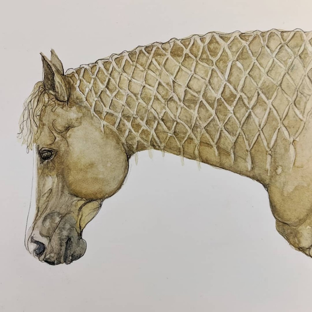 horses, painting, palomino, pen and ink, watercolor