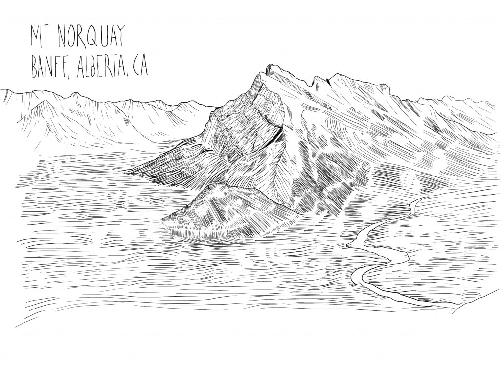 digital art, doodling, drawing, illustration, landscape, mountain range, mountains, mt norquay, procreate, rockies, rocky mountains