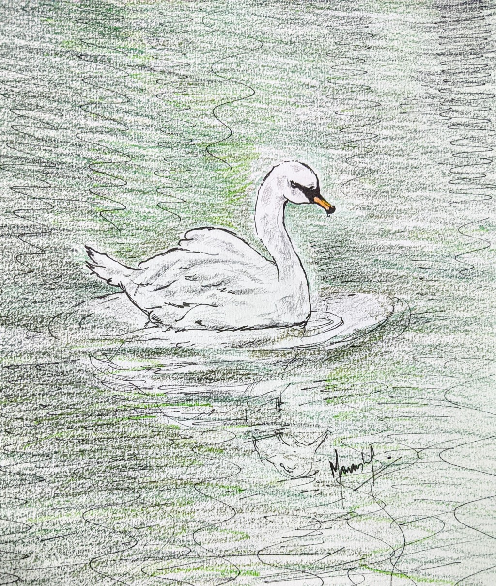 Swan Drawing using pen and colored pencils...:)