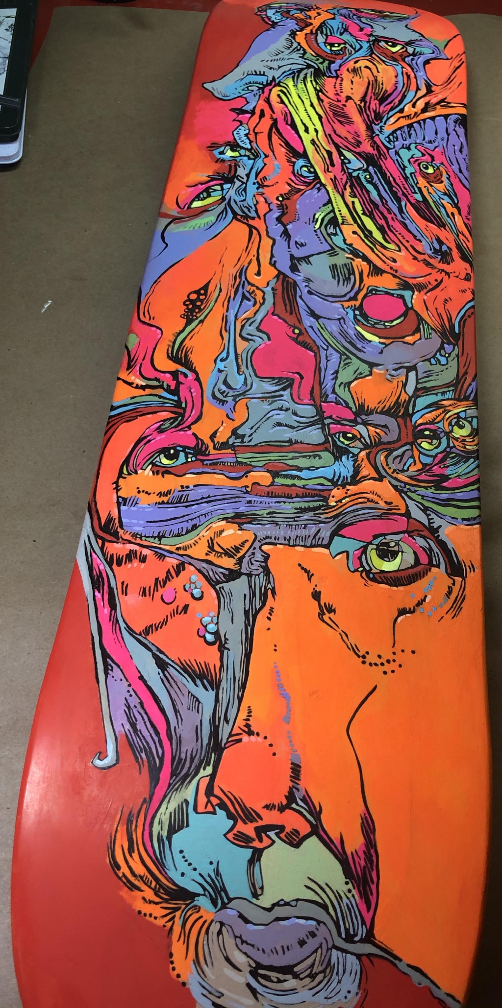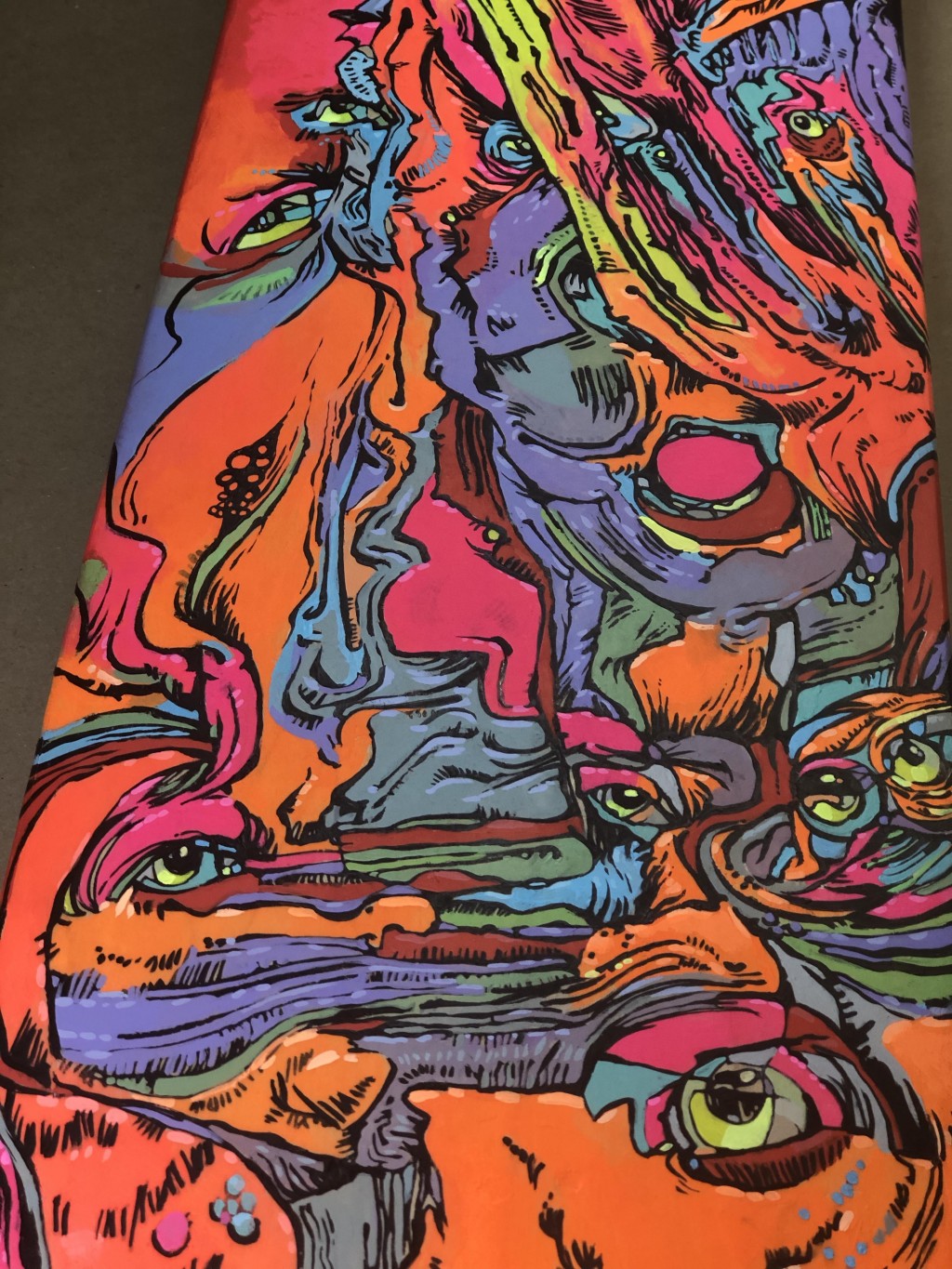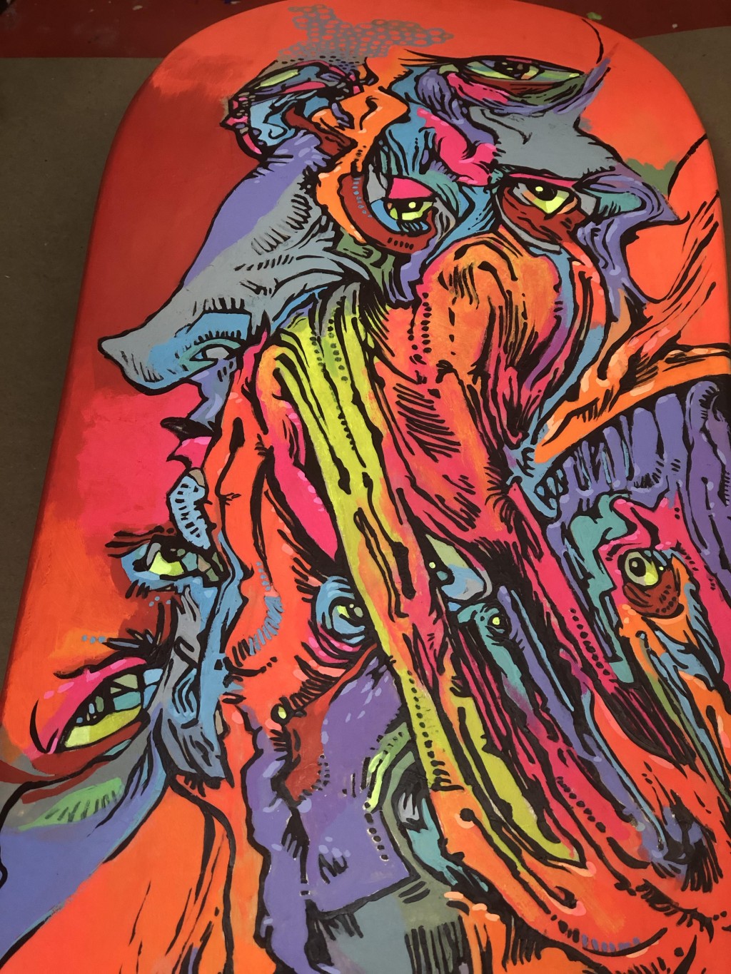 The Seasons. Acrylic Gouache on Wood Skateboard Deck. 7.75” x 32” Almost finished! I’ll be donating this hand-painted skateboard deck to support the Kansas City Artists Coalition’s 37th Annual Benefit Art Auction taking place on February 29, 2020. This is an extension of my steam of consciousness sketchbook practice. Having fun!