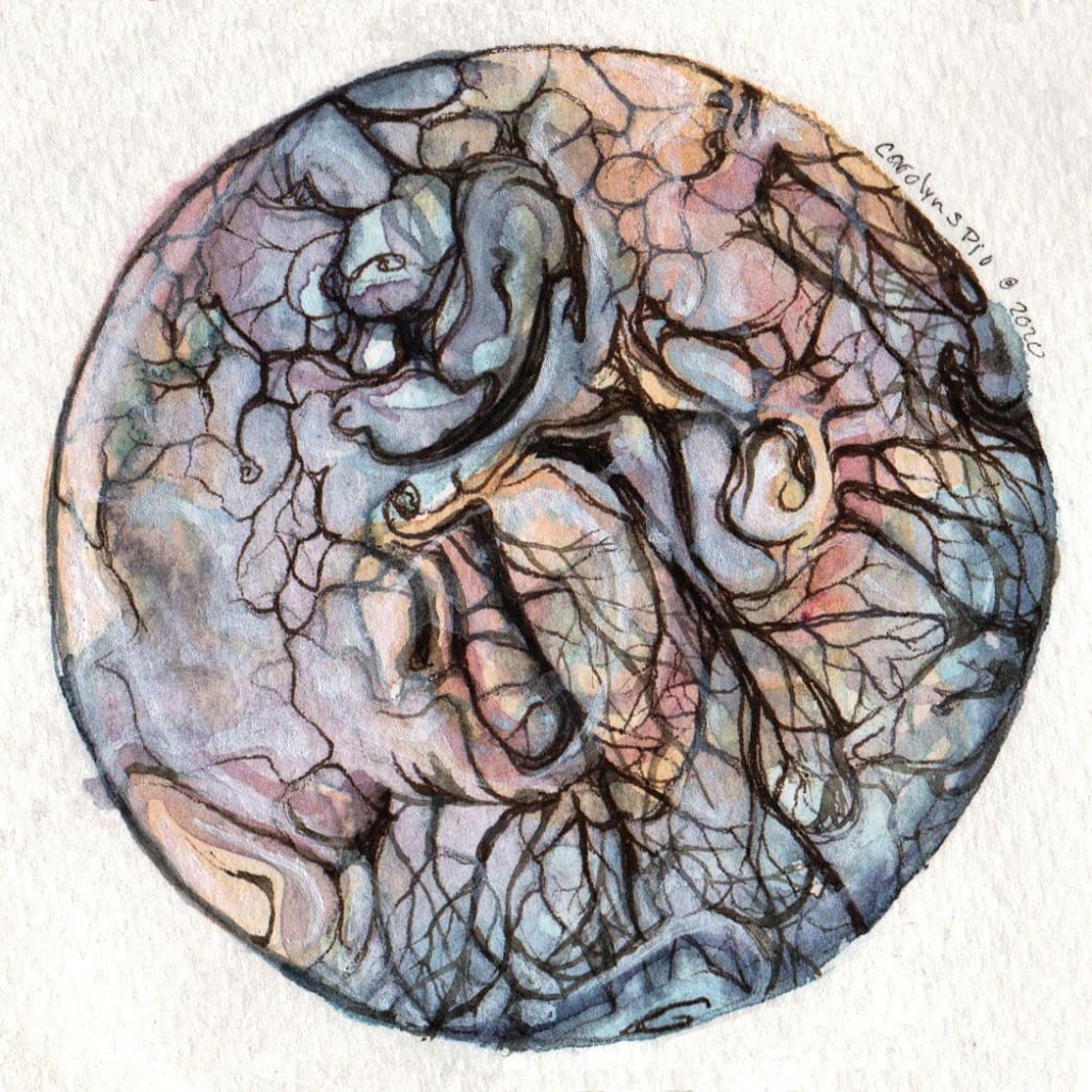 Trees in a reflection have always been a subject of interest to me. I have created several of this version, trying to fine-tune my skills and explore some opaque techniques.