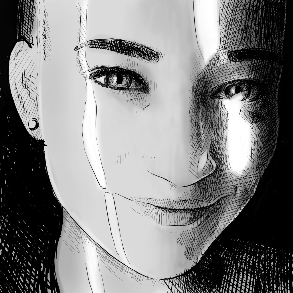 art, black and white, bnw, digital, drawing, eyes, face, light, love, portrait, procreate, sketch, smile, tone