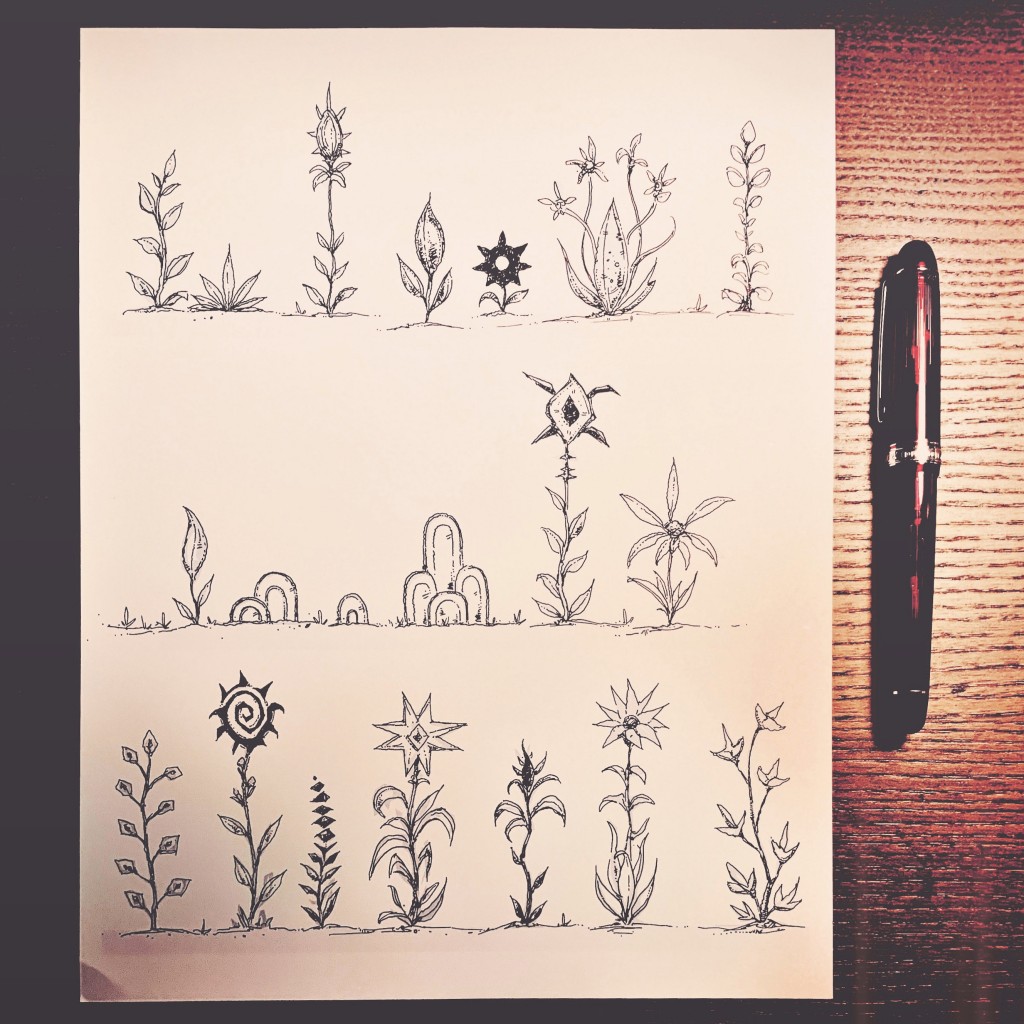 Life is a balancing act of family, work, friends, etc. I’m not so good at that stuff but here’s a bunch of flowers drawn with a 3776 Century SF, Shungyo edition. 2241 of 3776.