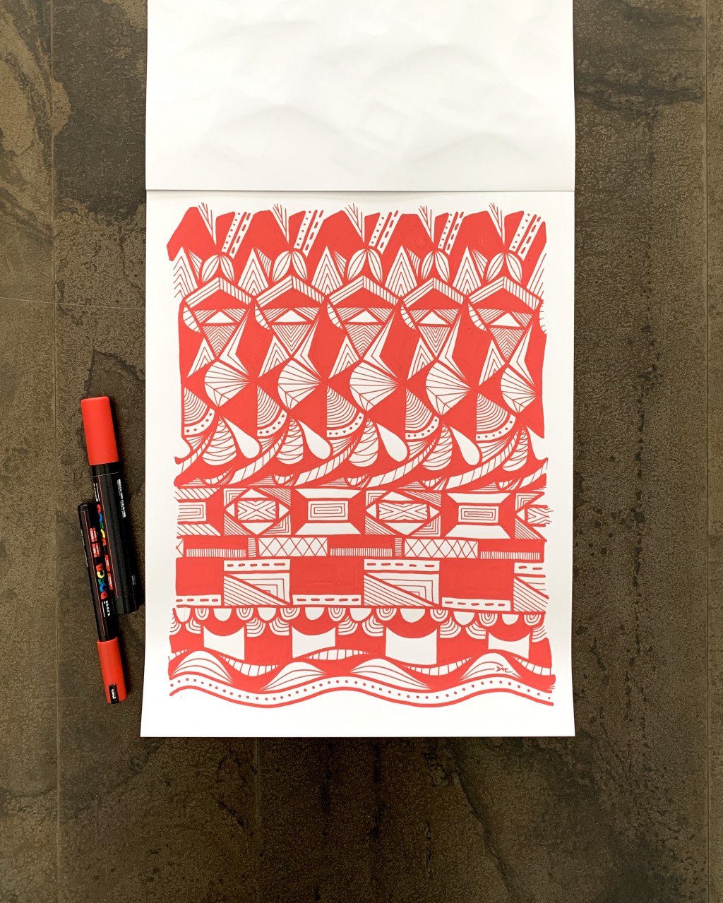 Getting more detailed with this pattern study, so this definitely wasn't a quickie! Gold Posca pen stream of consciousness doodling.