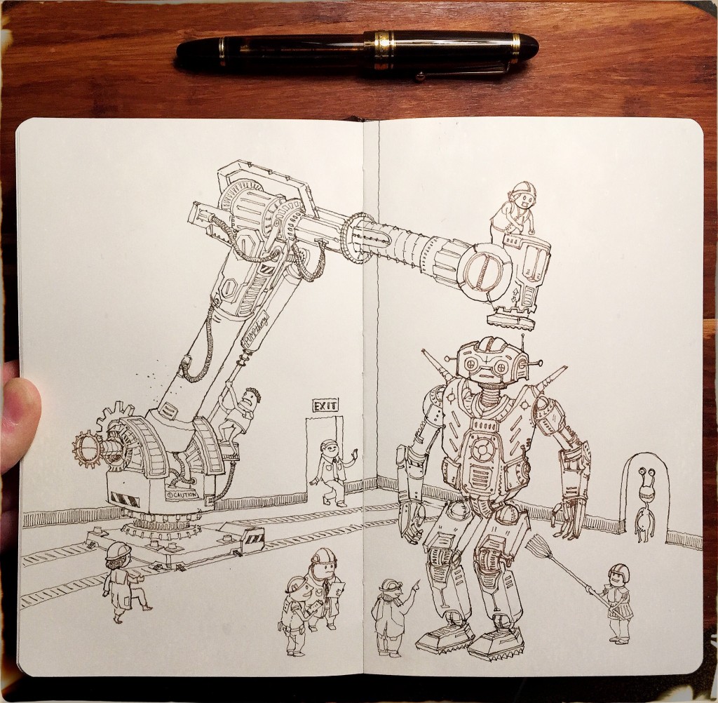 Robot Factory Sketch, Moleskine. Pilot Custom 823 EF fountain pen!