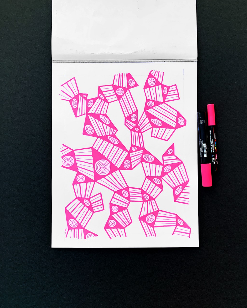 “Whirlwind 7”, an original drawing. Micron pens on archival paper. Size: 4” x 6”. Title, signature and date in the back of the drawing. This drawing is the 7th in a series of drawings that were posted over a period of 100 days. The original post date on this drawing was September 7, 2020.