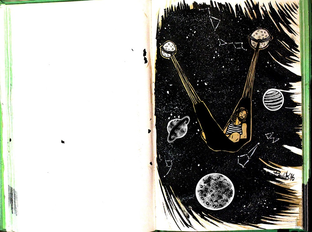 Self with planets. 2016 Sketchbook. Coffee and Ink. Facebook: https://www.facebook.com/ANIA.PAWLIK.Fine.Art.Illustration/