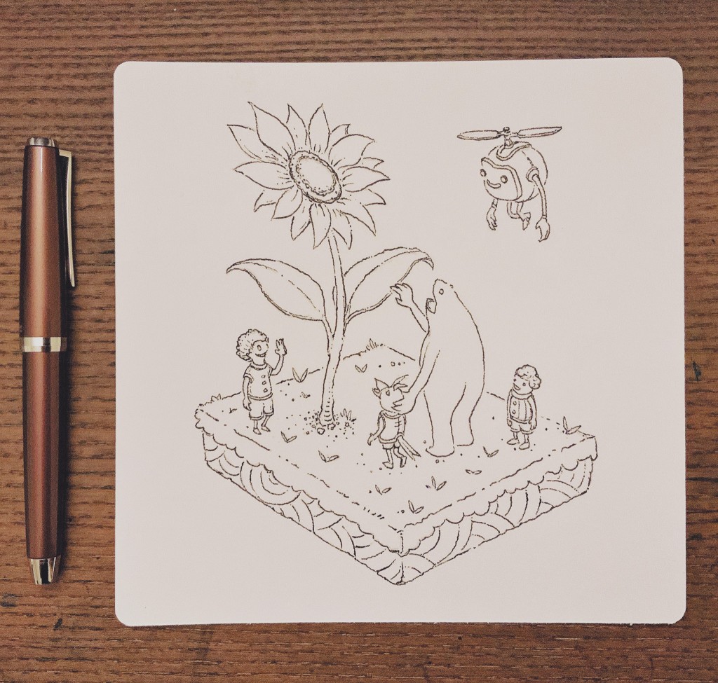 I drew this in my Baron Fig Portals sketchbook while on the plane. We were flying on Turbulent West Airlines.
