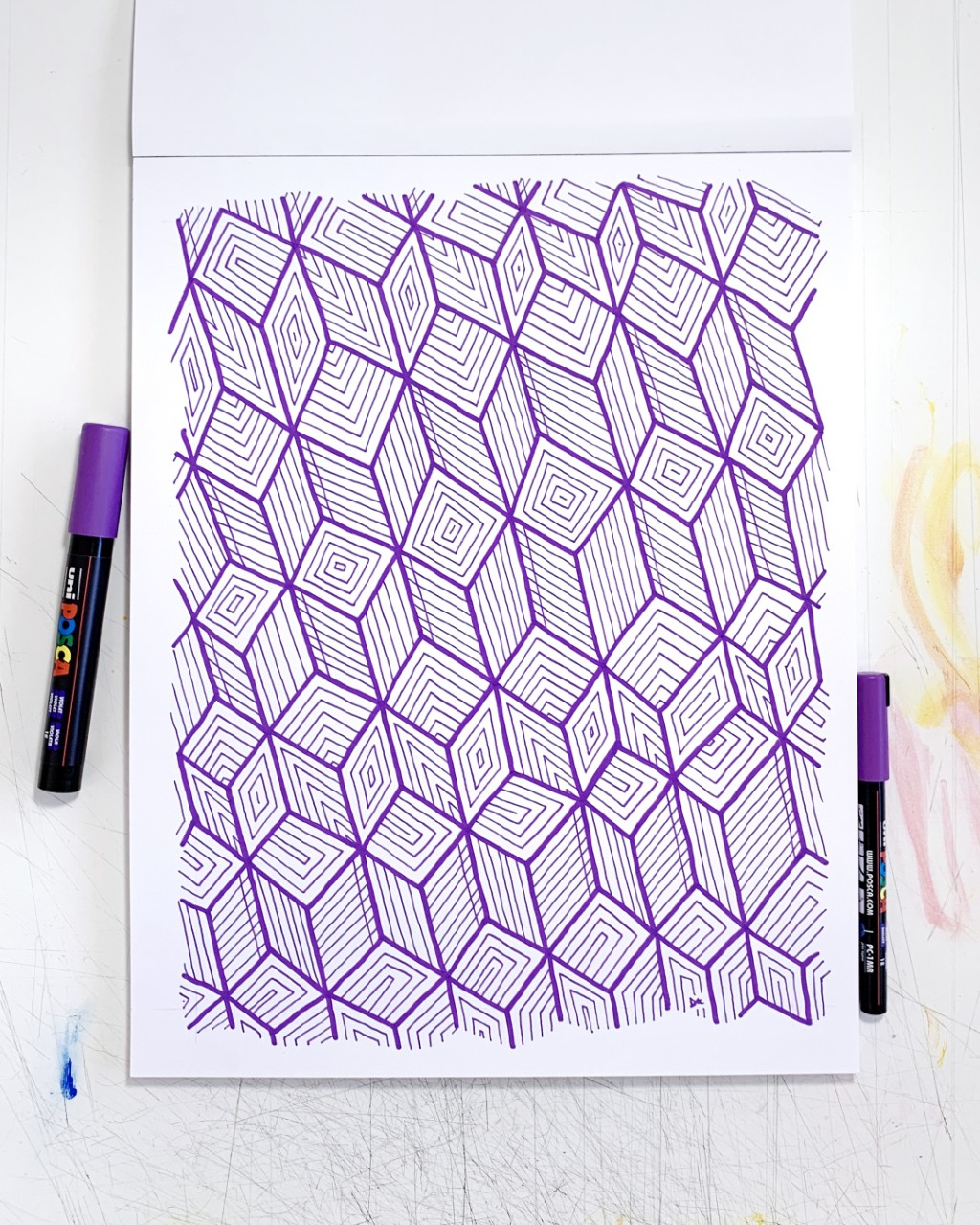 One of many exercises in asymmetrical symmetry over here. "Sunny's Waves" doodle drawing. 6" x 6" / Micron Pens on 100lb Acid Free Archival Bristol 2 Ply Paper.