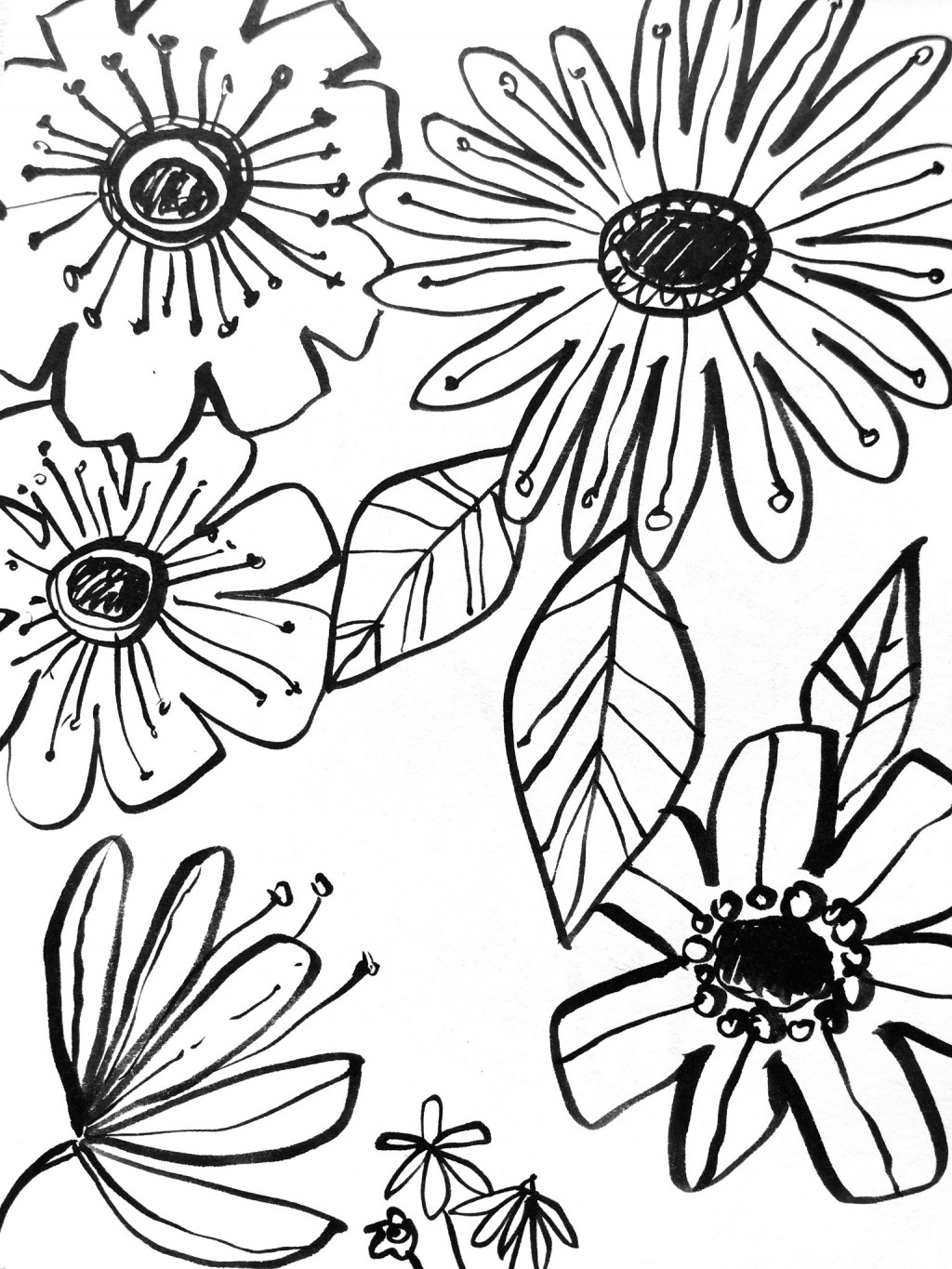 brush pen, doodling, flowers, illustration, ink, sketchbook