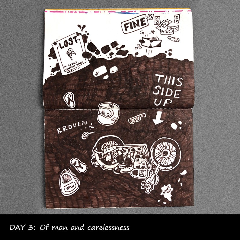 People click pictures to remember and tell stories of their adventures on the trip. I want to tell my travel stories through doodles. This is my first attempt at them, and looks like i would stick to making these on my travels. This one is for the 4 day trip to Dharmashala, Himachal Pradesh, India. A 4 day trip of adventures captured in form of a doodle comic strip.