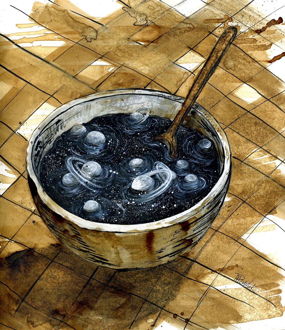 My little fun series of everyday food during quarantine just to make it more cosmic ;) This one sketch a day approach helps with my long break in drawings! :) Sketchbook, coffee and ink.