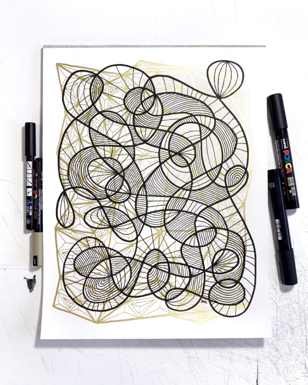 Freehand hexagon pattern study doodle. Made with Posca pens.