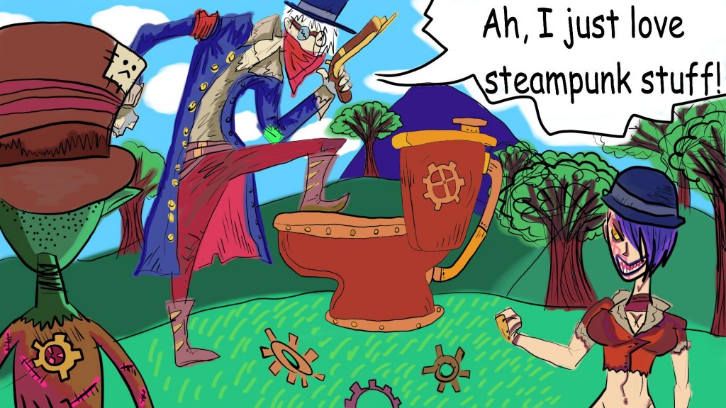 @AnneLotz Thank you, It's no specific reference, I'm just making up weird stuff, making fun of bandit characters from video games and my friends that are actually into steampunk hardcore. Again, thanks,