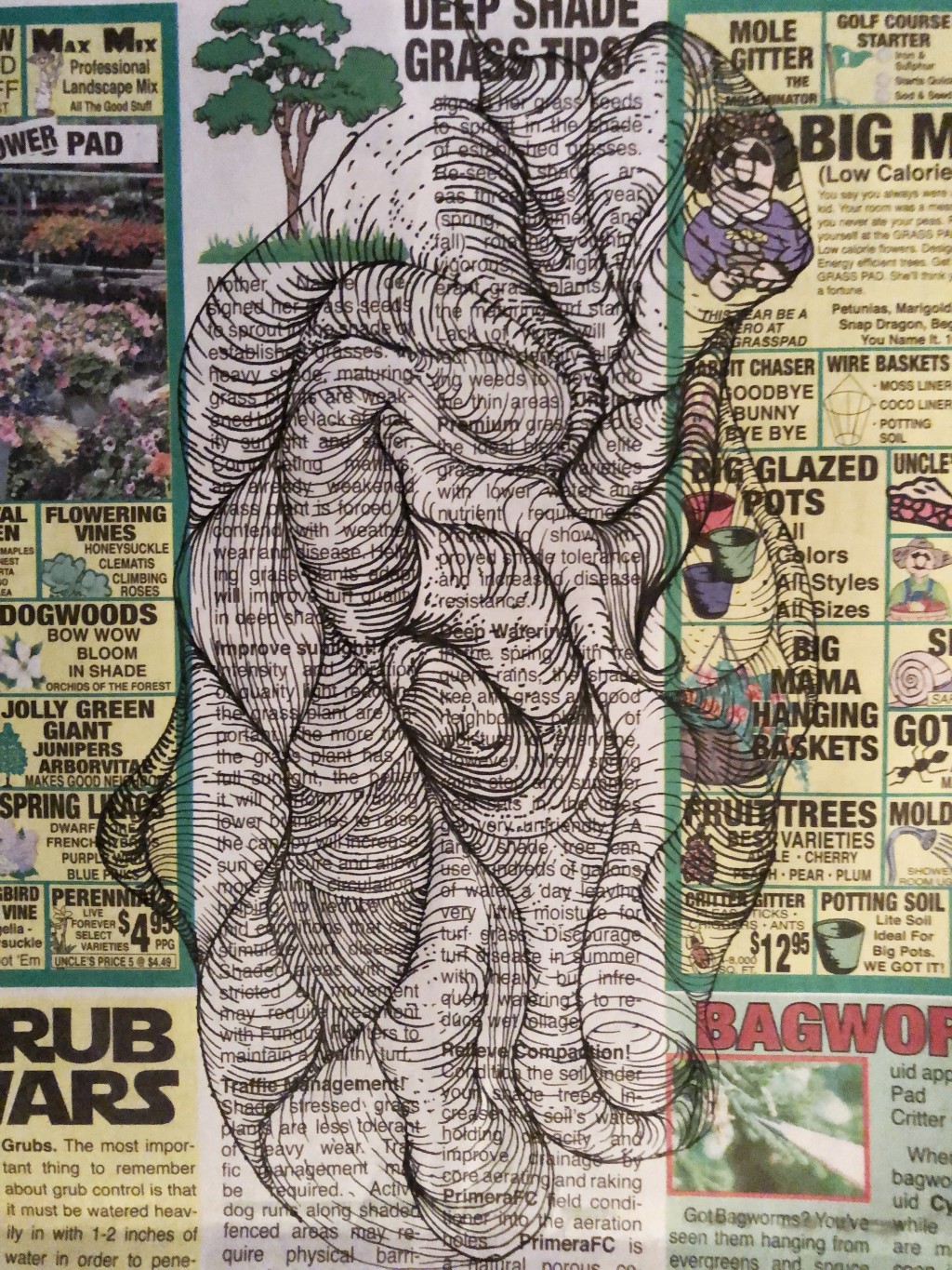 doodle, drawing, illustration, junk mail, newspaper, pen and ink, practice, scratchpaper